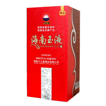 海南玉液酒是海南久之美酒業(yè)有限公司為海南本土市場量身定制的優(yōu)質(zhì)濃香型白酒,飲后或豪飲后均不上頭、不口干、身體恢復(fù)快。2012年被海南省工商局認(rèn)定為“海南省著名商標(biāo)”;2013年被海南省名牌產(chǎn)品認(rèn)定委員會授予為“2013年海南省名牌產(chǎn)品”稱號。該酒經(jīng)多位國家級和省級評酒專家品評,一致認(rèn)同海南玉液酒不亞于“五糧液” 。該酒的包裝設(shè)計富有強烈時代氣息和濃厚地方特色,創(chuàng)造性地采用了“要想身體好常來海南島”宣傳海南的流行語,溶匯了海南文化元素,適宜接待應(yīng)酬及做饋贈禮品,是海南...[更多內(nèi)容]